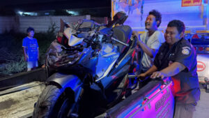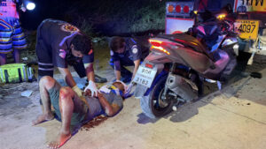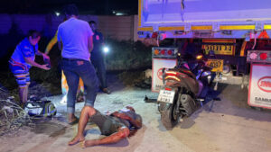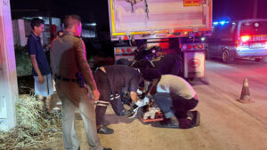 หนุ่มพม่าควบมอเตอร์ไซค์เพื่อน พุ่งอัดท้ายรถพ่วงจอดข้างทาง เจ็บสาหัสจมกองเลือด
