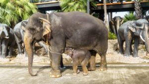 สวนนงนุชพัทยาดูแล ทำคลอดลูกช้าง “พลายศรีวิชัย” อย่างใกล้ชิด สมาชิกใหม่แห่งปางช้าง หลังแม่ช้างเคยพลาดเหยียบลูกช้างเสียชีวิต พร้อมจัดพิธีรับขวัญอย่างยิ่งใหญ่