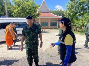 พลตรี สกนธ์ เพชรทอง ผู้บัญชาการกองพลพัฒนาที่ 3 นำกำลังพลทหาร ลงพื้นที่ช่วยบรรจุทราย เพื่อป้องกันน้ำท่วม