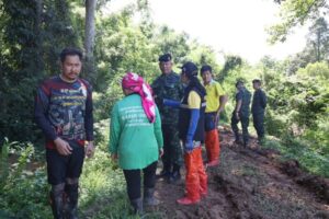 พร้อมลงพื้นที่ให้กำลังใจประชาชนที่กำลังดำเนินการอุดรอยรั่วบนพนังบริเวณหลังบ้านอาจารย์วันชัย เชียงแสน หมู่ 2