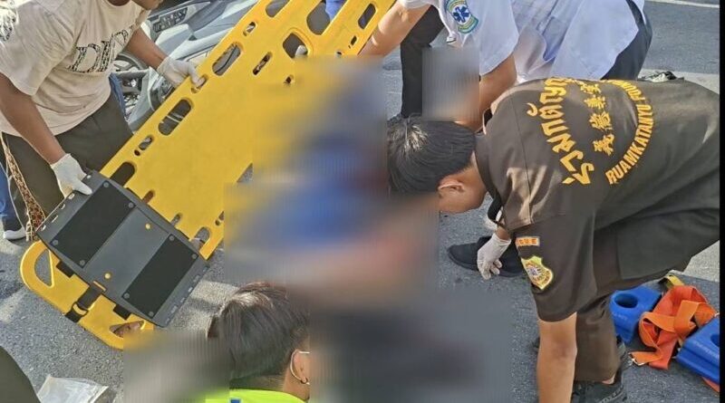 เจ้าหน้าที่อาสาสมัครพร้อมประชาชนช่วยปฐมพยาบาลเบื้องต้น ก่อนเร่งนำตัวส่งโรงพยาบาลตากสินเพื่อทำการรักษา
