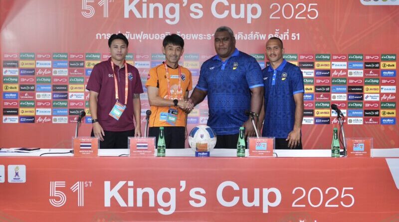 วันที่ 3 กันยายน 2568 เวลา 15.00 น. ณ ห้องแถลงข่าว สนามกีฬากลางจังหวัดกาญจนบุรี (กลีบบัว) ฝ่ายจัดการแข่งขันฟุตบอลชิงถ้วยพระราชทาน คิงส์ คัพ ครั้งที่ 51 จัดงานแถลงข่าวก่อนการแข่งขันฟุตบอล คิงส์ คัพ รอบรองชนะเลิศ คู่ที่สอง ระหว่าง ทีมชาติไทย (เจ้าภาพ) กับ ทีมชาติฟิจิ