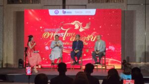 ภายในงานแถลงข่าว ได้รับเกียรติจาก นายดุสิต อนันตรักษ์ รองอธิบดีกรมส่งเสริมอุตสาหกรรม รองศาสตราจารย์ ดร.สุมนมาลย์ เนียมหลาง รองอธิการบดีมหาวิทยาลัยเทคโนโลยีราชมงคลธัญบุรี และผู้อำนวยการโครงการ และนายวิชิต เครือสุข รองผู้อำนวยการสำนักงานกองทุนหมู่บ้านและชุมชนเมืองแห่งชาติ ร่วมเสวนาแลกเปลี่ยนมุมมองเกี่ยวกับวัตถุประสงค์ของโครงการ รายละเอียดหลักสูตร และแนวทางการขับเคลื่อน Soft Power ผ่านเศรษฐกิจสร้างสรรค์ โดยเฉพาะการดำเนินงานภายใต้โครงการ “หนึ่งครอบครัว หนึ่งซอฟต์พาวเวอร์ (One Family One Soft Power: OFOS)” ที่มุ่งเน้นให้ประชาชนทุกครัวเรือนสามารถเข้าถึงโอกาสในการพัฒนาทักษะอาชีพได้อย่างเท่าเทียม ด้วยระบบลงทะเบียนที่โปร่งใสและครอบคลุมทั่วประเทศ