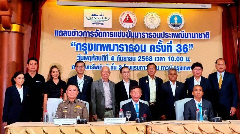 วันนี้ ( 4 ก.ย.68 ) ที่ โรงแรมทาวน์ อิน ทาวน์ กรุงเทพฯ สมาคมนักวิ่งเพื่อสุขภาพแห่งประเทศไทย นำโดย พลโท สัมพันธ์ ยังพะกูล นายกสมาคมฯ พร้อมด้วยพลตำรวจตรีชัยพัชร์ ศรีประเสริฐ รองผู้บัญชาการตำรวจนครบาล และร้อยตรีนายแพทย์การันต์ ศรีวัฒนาบูรพา ผู้ควบคุมฝ่ายแพทย์ จากโรงพยาบาลพระมงกุฏเกล้า ร่วมแถลงข่าวและรายละเอียดด้านเส้นทางการแข่งขันและฝ่ายแพทย์การจัดการแข่งขันมาราธอนประเพณีนานาชาติ “กรุงเทพฯมาราธอน ครั้งที่ 36” พร้อมขอเชิญชวนนักวิ่งทั่วโลกเข้าร่วมเป็นส่วนหนึ่งของงานวิ่งประวัติศาสตร์ “กรุงเทพมาราธอน ครั้งที่ 36” ในวันอาทิตย์ที่ 16 พฤศจิกายน พ.ศ. 2568 ณ กรุงเทพมหานคร งานวิ่งที่เก่าแก่และยิ่งใหญ่ที่สุดของไทย ซึ่งเป็นรายการที่นักวิ่งจะได้ชิงถ้วยพระราชทานอันทรงเกียรติของพระบาทสมเด็จพระบรมชนกาธิเบศร มหาภูมิพลอดุลยเดชมหาราช บรมนาถบพิตร