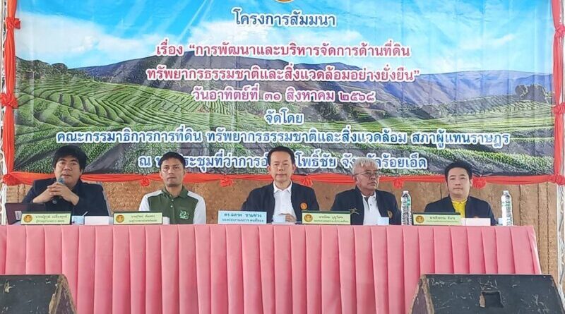 ร้อยเอ็ด – คณะกรรมาธิการการที่ดิน ทรัพยากรธรมชาติและสิ่งแวดล้อม สภาผู้แทนราษฎร จัดโครงการสัมมนารับฟังปัญหาความเดือดร้อนของราษฎรชาวอำเภอโพธิ์ชัย