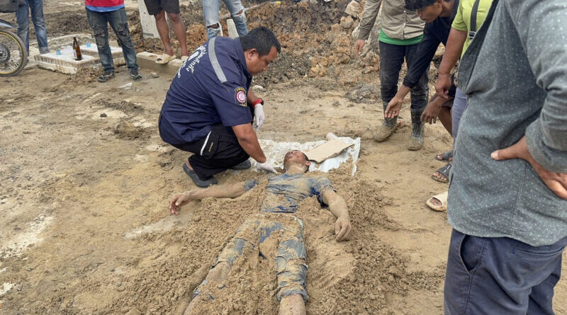 พอเจ้าหน้าที่เดินทางไปถึงก็พบว่ามีเพื่อนคนงานต่างชาติพากันมุ่งดูจำนวนมาก ขณะที่ผู้บาดเจ็บคือ นาย สีหนาท อายุ 32 ปี กู้ภัยต้องตกตะลึง เมื่อสิ่งที่เห็นตรงหน้า คือผู้ป่วยรายนี้ นอนอยู่บนแผ่นสังกะสี โดยมีทรายจำนวนมากถูกเทกลบจนมิดตัวเหลือเพียงช่วงศีรษะและใบหน้าเท่านั้น