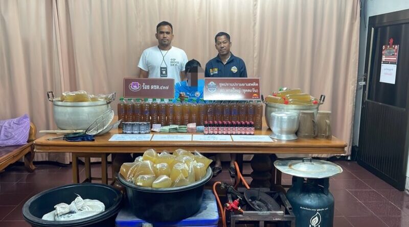 ชุดปราบปรามยาเสพติดบุกทลายโรงต้มและขายน้ำใบกระท่อมรายใหญ่ในชุมชนสะพานดำพื้นที่สีแดงของยาเสพติดในอ.หาดใหญ่