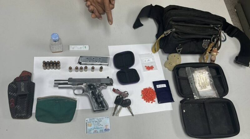 ซึ่งในขณะที่เจ้าหน้าที่ตำรวจสภ.เมืองพังงา ตั้งด่านตรวจสกัดป้องกันการก่ออาชญากรรมและปราบปรามยาเสพติดบนถนนเข้าตัวเมืองพังงาบริเวณจุดยูเทิร์น สวนมะพร้าว ใกล้สถานีขนส่งผู้โดยสารจังหวัดพังงา ต.ถ้ำน้ำผุด อ.เมืองพังงา ได้พบเห็นผู้ต้องหาขับรถเข้ามายังจุดตรวจและมีท่าทีน่าสงสัย เจ้าหน้าที่จึงทำการตรวจค้นรถจนพบของกลางยาบ้า และอาวุธปืนดังกล่าว เจ้าหน้าที่ จึงแจ้งข้อกล่าวหา มียาเสพติดให้โทษประเภท 1(เมทแอมเฟตามีน) ไว้ในครอบครองเโดยไม่ได้รับอนุญาต , มีอาวุธปืนและเครื่องกระสุนปืนไว้ในครอบครองโดยไม่ได้รับอนุญาต , พาอาวุธปืนติดตัวไปในเมือง หมู่บ้าน หรือทางสาธารณะ โดยไม่ได้รับอนุญาตให้มีอาวุธปืนติดตัว และไม่มีเหตุจำเป็น นำส่งพนักงานสอบสวนสภ.เมืองพังงาดำเนินการตามกฎหมายต่อไป