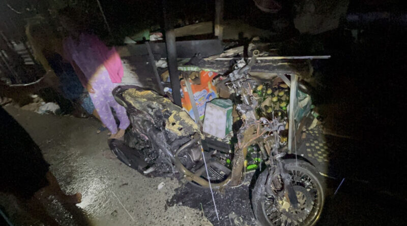 ภาพจากกล้องวงจรปิดจับภาพช่วงเวลา 22.40 น. ของคืนวันที่ 7 กันยายน 2568 มีชายสวมเสื้อกันฝนคลุมศีรษะ เดินเข้าไปราดน้ำมันจุดไฟเผารถจักรยานยนต์ จนไฟลุกโชน เหตุเกิดบนทางเดินปูน หน้าบ้านเลขที่ 333/56 หมู่ที่ 13 ซอยทองปรกหลังวัดบน ต.คลองด่าน อ.บางบ่อ จ.สมุทรปราการ ก่อนชายคนดังกล่าววิ่งหลบหนีออกมา