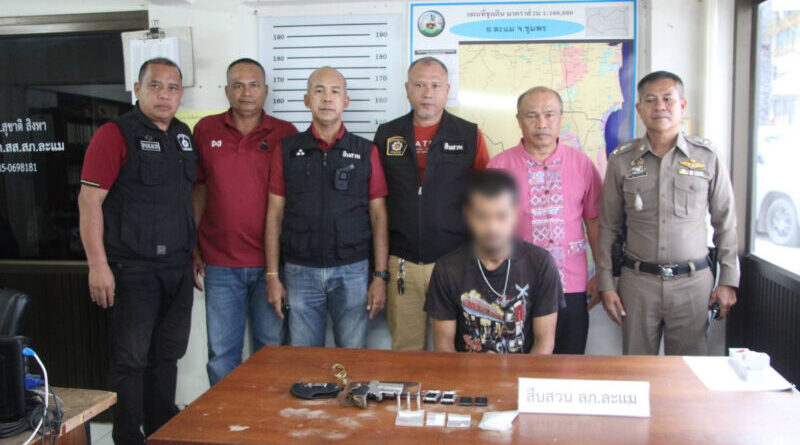 ชุมพร – จับปืนพกสั้น(ประกอบขึ้นเอง) .38 พร้อม ยาไอซ์ ยาบ้า จำนวนหนึ่ง
