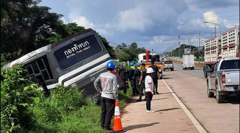 ” ชนสนั่น “รถบัสกองพลทหารม้าที่ 1 จ.เพชรบูรณ์ นำกำลังพลไปสับเปลี่ยนชายแดนไทยพม่า ประสบอุบัติเหตุ มีผู้ได้รับบาดเจ็บ 4 ราย รถบัสทหาร รถเก๋ง รถบรรทุก รถกระบะ 6 คันได้รับความเสียหาย ส่วนสาเหตุอยู่ในระหว่างการสอบสวนของเจ้าหน้าที่ตำรวจ