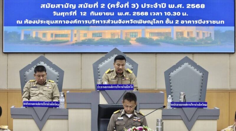 วันที่ 12 กันยายน 2568 นายศรายุทธ คชพงศ์ ประธานสภาองค์การบริหารส่วนจังหวัดพิษณุโลก เปิดประชุมสภาองค์การบริหารส่วนจังหวัดพิษณุโลก สมัยสามัญ สมัยที่ 2 (ครั้งที่ 3) ประจำปี พ.ศ.2568 ณ ห้องประชุมสภาองค์การบริหารส่วนจังหวัดพิษณุโลก ชั้น 2 อาคารบึงราชนก อำเภอวังทอง จังหวัดพิษณุโลก โดยมีสมาชิกสภาองค์การบริหารส่วนจังหวัดพิษณุโลก เข้าร่วมครบองค์ประชุม ส่วนฝ่ายบริหารมี นายมนต์ชัย วิวัฒน์ธนาฒย์ นายกองค์การบริหารส่วนจังหวัดพิษณุโลก พร้อมด้วย นายเชาวฤทธิ์ ฉายะกูล รองนายกองค์การบริหารส่วนจังหวัดพิษณุโลก คณะผู้บริหาร หัวหน้าส่วนราชการองค์การบริหารส่วนจังหวัดพิษณุโลก เจ้าหน้าที่ตำรวจ และผู้สังเกตการณ์เข้าร่วมประชุม
