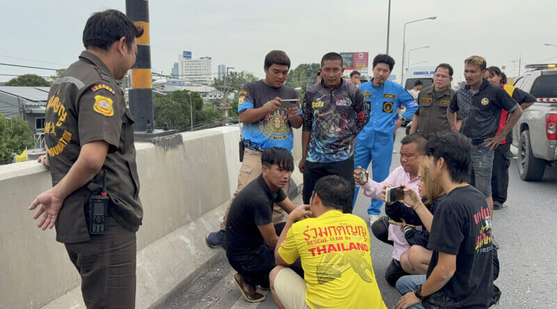 ไม่ใช่ครั้งแรก หนุ่มคนเดิมก่อเหตุซ้ำปีนขอบสะพานขู่จะกระโดด เดือดร้อนตำรวจกู้ภัยต้องปิดถนนศรีนครินทร์เจรจา