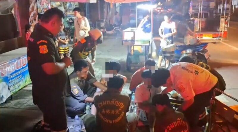 สามหนุ่มน้อยขี่รถมอไซค์มาหาของกินก่อนเฉี่ยวท้ายรถสองแถวจนเสียหลักล้มบาดเจ็บ