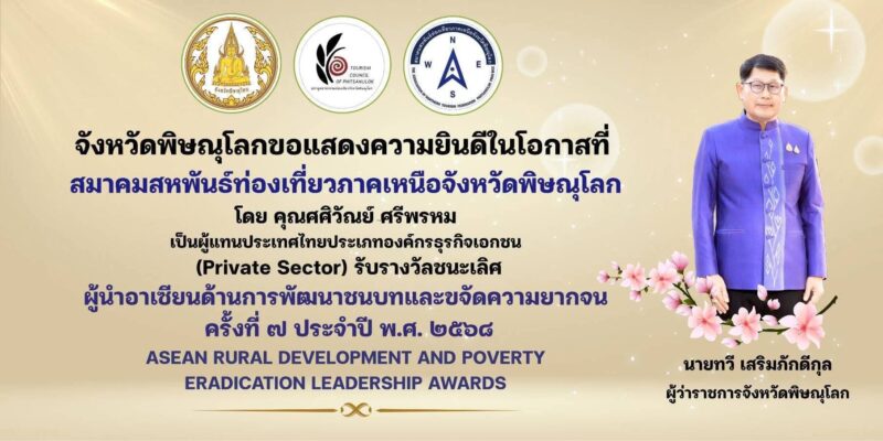 ความสำเร็จครั้งนี้ถือเป็นอีกหนึ่งความภาคภูมิใจของชาวพิษณุโลก รางวัลนี้การันตีว่าจังหวัดพิษณุโลก มีบุคลากรที่ทำงานระดับอาเซียน และแสดงศักยภาพให้เห็นในเวทีระดับภูมิภาค เป็นแรงบันดาลใจในการขับเคลื่อนการพัฒนาอย่างต่อเนื่อง