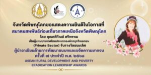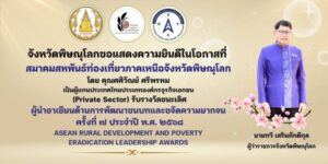 โดย คุณศศิวัณย์ ศรีพรหม เป็นผู้แทนประเทศไทยประเภทองค์กรธุรกิจเอกชน (Private Sector) ที่ได้รับรางวัลชนะเลิศ”ผู้นำอาเซียนด้านการพัฒนาชนบทและการขจัดความยากจน ครั้งที่ 7 ประจำปี พ.ศ. 2568 (ASEAN Rural Development and Poverty Eradication Leadership Awards)