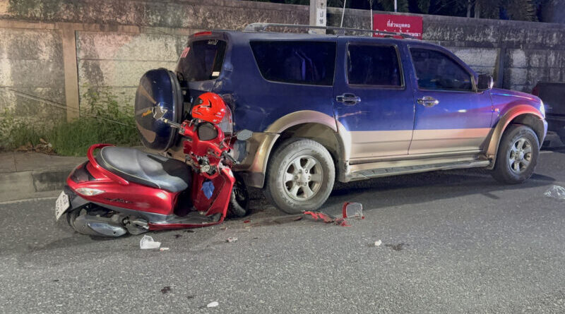 สาวขี่มอไซค์ชนท้ายรถเอสยูวีที่จอดอยู่ข้างทาง เจ็บสาหัส