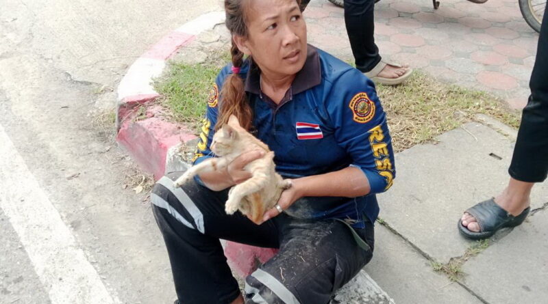 จากการตรวจสอบบริเวณเหล็กตะแกรงท่อน้ำทิ้ง พบลูกแมวน้อยสีส้มร้องครวญครางอยู่ตลอดเวลา ชาวบ้าน เล่าให้ฟังว่า ตนเองได้ยินเสียงมาแล้ว 2 วัน แต่ช่วยเหลือออกมาไม่ได้ คาดว่าหนีสุนัขลงท่อบริเวณจุดอื่น ที่ตะแกรงเหล็กชำรุดแล้วเดินมาเรื่อย ๆ ด้านในท่อโผล่ที่บริเวณดังกล่าว แล้วออกมาไม่ได้ ทางชาวบ้านและเจ้าหน้าที่กู้ภัยช่วยงัดเหล็กตะแกรงออก แล้วทาง นางสาว รฐา ใช้ที่เหล็กเกี่ยวลูกแมว แล้วใช้มือจับออกมาได้อย่างปลอด ท่ามกลางความดีใจของทุกคน พบแมวลูกแมวส้ม เพศเมีย อายุประมาณ 3 เดือน โดยมีชาวบ้านที่รอลุ้น นำไปเลี้ยงดูแลต่อไป
