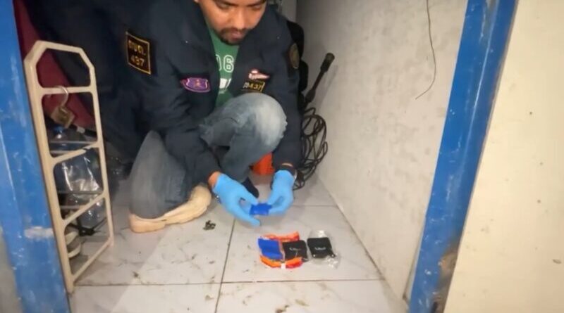 หลังจากที่สืบจนรู้และชัวร์แล้วว่าเพิ่งมีการนำยาบ้ามาส่งให้ จึงได้เข้าตรวจค้นในตอนกลางคืนราว4ทุ่ม