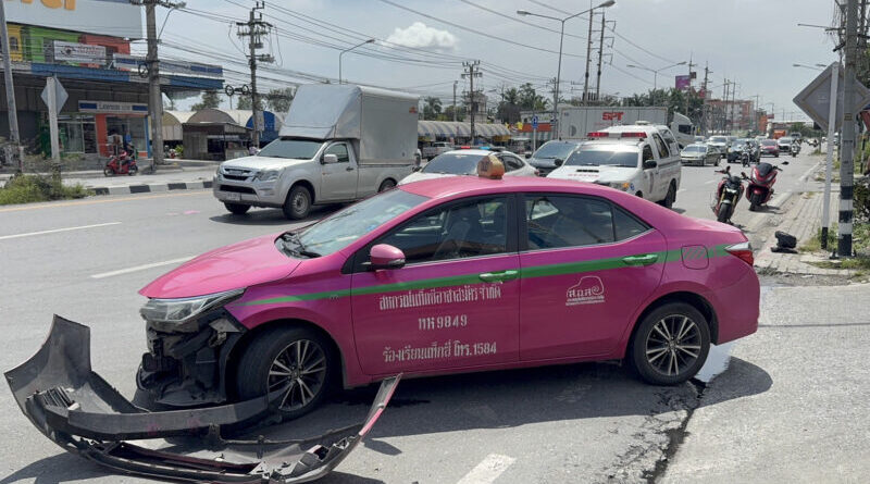 สองสาวดวงซวยขี่รถมาดีๆถูกสองหนุ่มหมอบแข่งกันมาพุ่งชนกระเด็นอัดซ้ำรถแท็กซี่ บาดเจ็บ 3 ราย