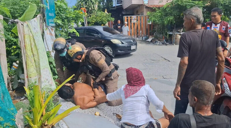 ที่เกิดเหตุบริเวณท้ายซอยดังกล่าว หน้าบ้านร้างหลังหนึ่ง เจ้าหน้าที่ พบ นายสุชาติ พูนดำเนิน อายุ 51 ปี สามี (เสื้อลายดำ) กับ นายอ๊อด อายุประมาณ 50 ปี คู่กรณี (ถอดเสื้อ) กำลังโต้เถียงกันไปมา ซึ่งจับใจความได้เป็น เรื่องความหึงหวง และ เรื่องที่ นายอ๊อด มุดมุ้งของภรรยา นายสุชาติ จนถึงขั้นเดินเข้าหากัน ทางเจ้าหน้าที่ตำรวจจึงต้องใช้ยุทธวิธีควบคุมตัวพร้อมใส่กุญแจมือ นายอ๊อด ไว้ โดยมี นายหน่อย จูรอด (เสื้อดำ) ที่ได้รับบาดเจ็บศีรษะแตกจากการที่ นายอ๊อด ใช้ขวดเหล้าตี และ นางสาวสมจิตร หุ่นทอง อายุ 53 ปี (ภรรยา นายสุชาติ) ที่อ้างว่าถูก นายอ๊อด มุดมุ้งเข้าไปจะข่มขืน ซึ่งหลังควบคุมสถานการณ์ได้ เจ้าหน้าที่จึงได้ควบคุมตัวทั้งหมดไปให้ปากคำต่อที่โรงพัก