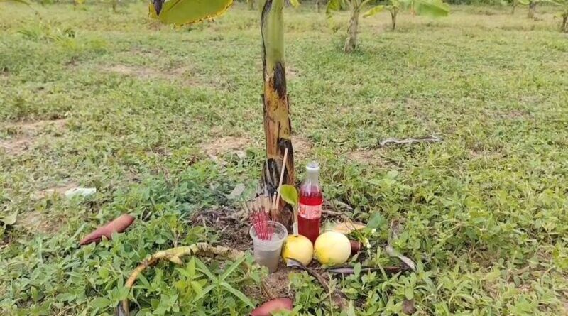 ที่บริเวณสวนกล้วยดังกล่าว พบชาวบ้านพากันนำดอกไม้ ธูป เทียน ผลไม้ น้ำแดง มากราบไหว้ต้นกล้วยน้ำว้าอายุ ประมาณ 2เดือนกว่า ความสูงประมาณ1เมตร ที่ตกเครือออกมา 1 เครือ แต่กับมีปลี กล้วยออกมา 2 ปลี ซึ่งมีปลีขนาดใหญ่และปลีขนาดเล็ก แปลกไปจากกล้วยต้นอื่นที่ ปลูกไว้
