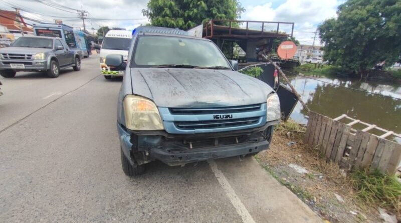 ปทุมธานี – กระบะชนแท็กซี่ตกคลอง หนุ่มพลเมืองดีกระโดดน้ำช่วยทัน