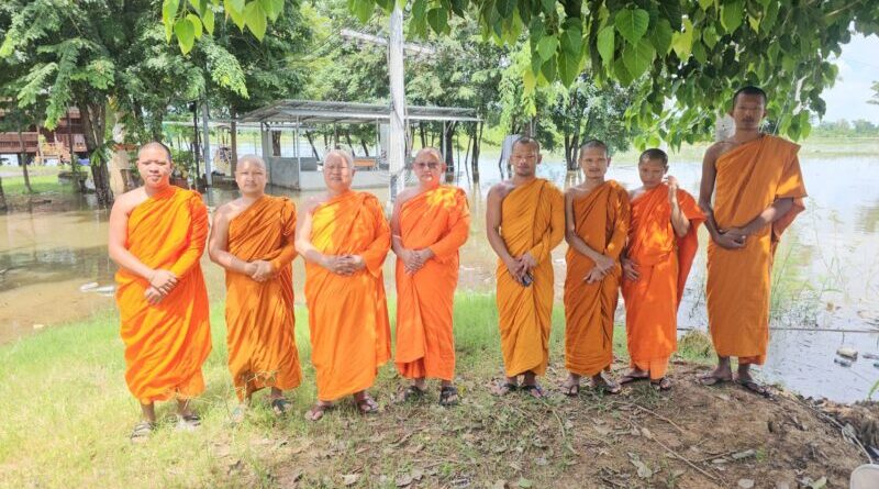 เจ้าคณะจังหวัด พายเรือลุยน้ำท่วม ให้กำลังใจคณะสงฆ์วัดพลายชุมพล ที่ประสบอุทกภัย