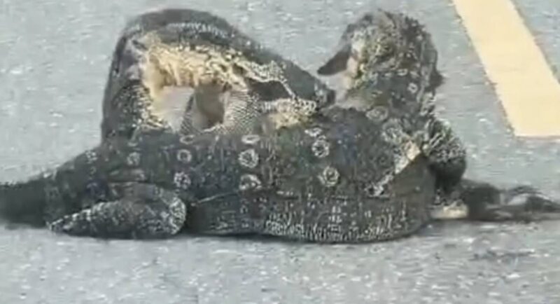 ที่ถนนสายหนองคันจาม ตำบลบ้านพริก อำเภอบ้านนา จังหวัดนครนายก ได้มีคุณแม่รายหนึ่งกำลังจะไปรับลูกสาวช่วงเวลา 16.00 น.ที่โรงเรียนวัดช้าง พอขับรถยนต์มาได้ระหว่างทางก็พบตัวเงิน-ตัวทองไม่ทราบว่าพลอดรักกันหรือหยอกล้อกันอยู่กลางถนน ทำให้ไปรับลูกสาวช้าลง และได้กดแตรรถให้ตัวเงิน ตัวทองออกจากเส้นทางก็ไม่ยอมออก จึงได้หยิบโทรศัพท์ขึ้นมาถ่ายคลิปถ่ายไปบ่นไป