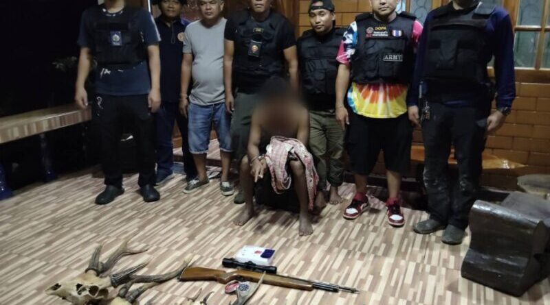 พังงา-ฝ่ายปกครองอำเภอคุระบุรี ออกปฏิบัติการกลาดล้างยาเสพติด ขยายผลทางเมสเซนเจอร์จับพ่อค้ายาบ้าได้ของกลางยาบ้า อาวุธปืนและซากสัตว์ป่าเพียบ