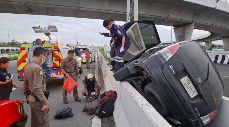 ปทุมธานี – รถขนต่างด้าวเสียหลักชนแท่นแบริเออร์ตกร่องกลางเสียชีวิต 2 บาดเจ็บ 7