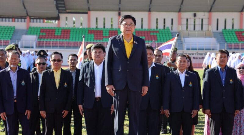 เมื่อเวลา 08.00 น. วันที่ 23 กันยายน 2568 ที่บริเวณสนามกีฬามหาวิทยาลัยนราธิวาสราชนครินทร์ (หน้าเสาธง) ตำบลโคกเคียน อำเภอเมือง จังหวัดนราธิวาส มหาวิทยาลัยนราธิวาสราชนครินทร์จัดกิจกรรม “เคารพธงชาติและร้องเพลงชาติไทย” เนื่องในวันพระราชทานธงชาติไทย เพื่อเชิดชูเกียรติธงไตรรงค์ สัญลักษณ์แห่งความเป็นไทย และปลูกฝังจิตสำนึกด้านความรักชาติ ความสามัคคี และความภาคภูมิใจในความเป็นชาติไทย