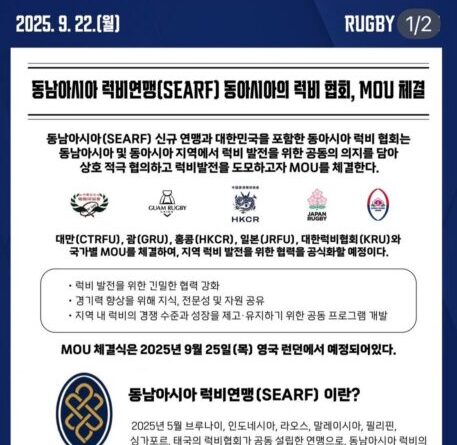 สหพันธ์รักบี้แห่งอาเซียน (SEARF) โดย “บิ๊กต้น” พ.ต.ท.กุลธน ประจวบเหมาะ ประธานสหพันธ์ เคลื่อนไหวแล้ว ก้าวแรกก็สะเทือนวงการรักบี้เอเซีย โดยได้เตรียมลงนามความร่วมมือกับ 5 ประเทศจากโซนเอเชียตะวันออก มี ญี่ปุ่น, ฮ่องกง, เกาหลีใต้, ไต้หวัน และ กวม ซึ่งถือว่าเป็นข่าวดีเมื่อ 2 ภูมิภาคจับมือเป็นพันธมิตรกัน โดยการลงนามครั้งสำคัญนี้จะมีขึ้นในวันที่ 25 ก.ย.2568 โรงแรมรอยัลการ์เดน กรุงลอนดอน ประเทศอังกฤษ
