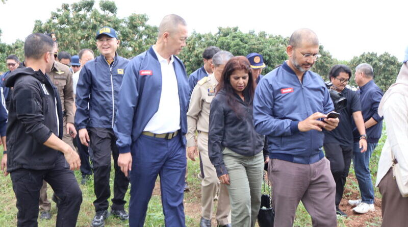 วันนี้ (25 ก.ย. 68) ที่จุดผ่านแดนถาวรบ้านผักกาด อ.โป่งน้ำร้อน จ.จันทบุรี พลตำรวจเอกธัชชัย ปิตะนีละบุตร ผู้อำนวยการศูนย์ต่อต้านการค้ามนุษย์ สำนักงานตำรวจแห่งชาติ นำคณะเจ้าหน้าที่ระดับปฏิบัติการของหน่วยบังคับใช้กฎหมายจากต่างประเทศ และเจ้าหน้าที่จากองค์กรระหว่างประเทศ ประกอบด้วย ญี่ปุ่น สหรัฐอาหรับเอมิเรตส์ จีน เกาหลีใต้ อินโดนีเซีย อินเดีย และเวียดนาม รวมถึงองค์กรระดับโลกอย่างสำนักงานว่าด้วยยาเสพติดและอาชญากรรมแห่งสหประชาชาติ (UNODC) องค์การตำรวจสากล (INTERPOL) สำนักงานสอบสวนกลางสหรัฐ (FBI) และหน่วยสืบราชการลับสหรัฐ (Secret Service) ลงพื้นที่ เพื่อหารือมาตรการป้องกันและปราบปรามอาชญากรรมที่เกี่ยวข้องกับแก๊งคอลเซ็นเตอร์ และการค้ามนุษย์ โดยมีนายมนต์สิทธิ์ ไพศาลธนวัฒน์ ผู้ว่าราชการจังหวัดจันทบุรี และพลตำรวจตรีผดุงศักดิ์ รักษาสุข ผู้บังคับการตำรวจภูธรจังหวัดจันทบุรี ให้การต้อนรับพร้อมกันนี้ คณะได้ลงพื้นที่ช่องทางธรรมชาติ “ช่อง 5 บาท” จุดที่มักพบการลักลอบเข้าเมืองผิดกฎหมาย และเป็นจุดที่สามารถมองเห็นอาคารต้องสงสัย ที่เชื่อว่าเป็นที่ตั้งของแก๊งคอลเซ็นเตอร์ได้อย่างชัดเจน