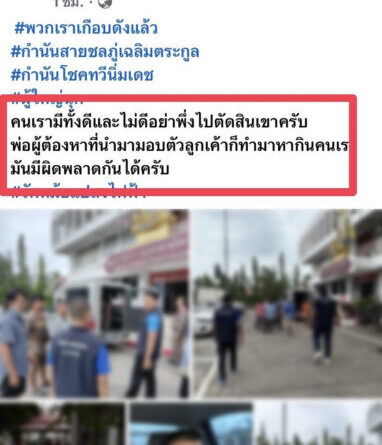 ต่อมาผู้สื่อข่าวได้ติดต่อ นายประกอบ ทองสีสังข์ เป็นกำนันตำบลสามโคก กล่าวว่า ที่โพสต์ไปไม่ได้คิดอะไรเพียงเพราะได้รับการติดต่อจากคนรู้จักและญาติของผู้ต้องหาว่าจะมาขอให้พาไปมอบตัวกับตำรวจจึงโทรไปประสานแต่ตำรวจกลับตามมาจับได้เสียก่อน จึงโพตส์เพียงให้ญาติผู้ต้องหารับรู้ว่าตนได้ประสานตำรวจจริงๆแค่เท่านั้น