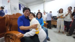 จินณ์ตวรรณ เบอร์ 2 ภูมิใจไทย กราบพ่อแม่ แถลงชัยชนะ หลังทิ้งห่างคู่แข่งกว่า 8 พันคะแนน