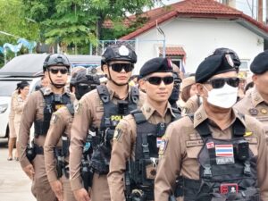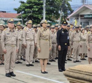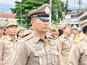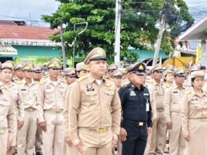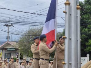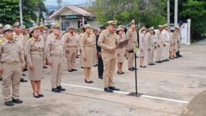 ตำรวจ ผู้นำท้องที่ผู้นำท้องถิ่น เข้าร่วมกิจกรรมเคารพธงชาติและร้องเพลงชาติไทย เนื่องในวันพระราชทานธงชาติไทย 28 กันยายน 2568