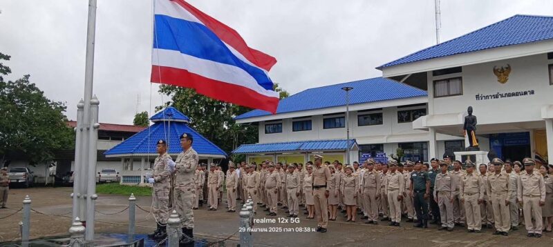 มุกดาหาร – ข้าราชการในสังกัดพื้นที่อำเภอดอนตาล นักเรียนพ่อค้าประชาชน ร่วมเชิญธงชาติร้องเพลงชาติไทยเนื่องในวันพระราชทานธงชาติไทย ประจำปี 2568