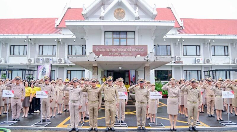วันที่ 29 กันยายน 2568 นายกานต์ กัลป์ตินันท์ นายก อบจ.อุบลราชธานี พร้อมด้วยคณะผู้บริหาร หัวหน้าส่วนราชการ และข้าราชการ อบจ.อุบลราชธานี ร่วมประกอบพิธี วันพระราชทานธงชาติไทย (Thai National Flag Day) ประจำปี 2568 ณ หน้าสำนักงาน อบจ.อุบลราชธานี