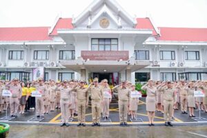 โดยมีการจัดกิจกรรมเคารพธงชาติและร้องเพลงชาติไทยร่วมกันอย่างพร้อมเพรียง