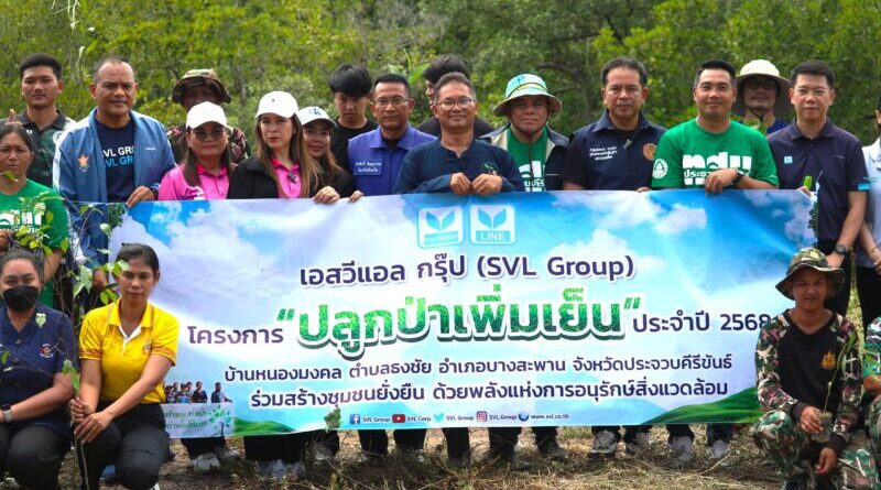 เอสวีแอล กรุ๊ป (SVL Group) จัดโครงการ “ปลูกป่าเพิ่มเย็น” ปี 2568 ร่วมกับภาครัฐและชุมชน ปลูกต้นไม้ทั้งป่าบกและป่าชายเลนรวมกว่า 600 ต้น สร้างสมดุลธรรมชาติและเพิ่มพื้นที่สีเขียวในพื้นที่ อ.บางสะพาน จ.ประจวบคีรีขันธ์ ภายใต้โครงการ “ปลูกป่าเพิ่มเย็น” ปี 2568 ณ พื้นที่สาธารณะ หมู่ 7 บ้านหนองมงคล ตำบลธงชัย อำเภอบางสะพาน