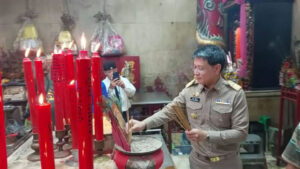 นายสยาม ศิริมงคล ผู้ว่าราชการจังหวัดสมุทรปราการ สักการะสิ่งศักดิ์สิทธิ์เนื่องในโอกาสเข้ารับตำแหน่งผู้ว่าราชการจังหวัดสมุทรปราการ เพื่อความเป็นสิริมงคล