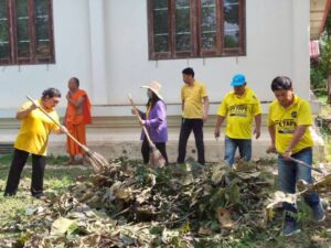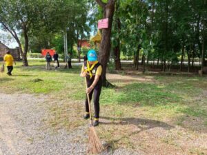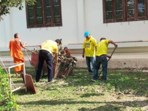 กวาดพื้น ทำความสะอาดพื้นที่วัด