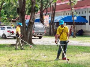 ตัดหญ้า ปรับภูมิทัศน์โดยรอบจัดการสิ่งแวดล้อมให้น่าอยู่และเอื้อต่อสุขภาพ