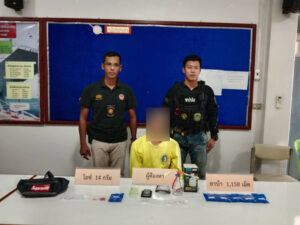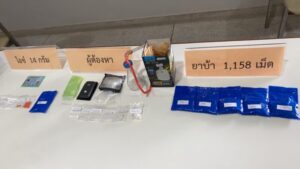 จากการเข้าตรวจสอบ ได้จับกุม นายธนวัฒน์ (สงวนนามสกุล)อายุ 31 ปี ชาว ตำบลปากคลอง อำเภอปะทิว จังหวัดชุมพร ได้พร้อมด้วยของกลาง 1.ยาเสพติดประเภท1 เมทแอมเฟตามีน(ยาบ้า) รวม 1,158 เม็ด 2.ยาเสพติดประเภท 1 เมทแอมเฟตามีน(ยาไอซ์) รวม 14 กรัม 3.โทรศัพท์มือถือ จำนวน 1 เครื่อง