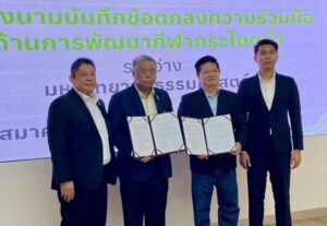 ตามนโยบายของ ร.อ.ธรรมนัส พรหมเผ่า รองนายกรัฐมนตรี ในฐานะนายกสมาคมกีฬาทางน้ำแห่งประเทศไทย ที่ต้องการพัฒนาเยาวชน และยกระดับสมาคม จึงได้มอบหมายให้ “โค้ชตึก“ นายธนาวิชญ์ โถสกุล เลขาธิการสมาคมกีฬาทางน้ำแห่งประเทศไทย และ สุธี พงษ์เพียรชอบ กรรมการสมาคมฯ ลงนามความร่วมมือ MOU กับ มหาวิทยาลัยธรรมศาสตร์ ที่มี ยรรยง อัครจินดานนท์ ผู้อำนวยการสำนักงานบริหารทรัพย์สินและกีฬา ม.ธรรมศาสตร์ และ ณัฐพงศ์ จงอักษร ผู้จัดการฝ่ายพัฒนาธุรกิจกีฬา ม.ธรรมศาสตร์ ร่วมลงนาม ในการเป็นสถานที่ฝึกและสร้างนักกีฬากระโดดน้ำของสมาคมกีฬาทางน้ำแห่งประเทศไทย