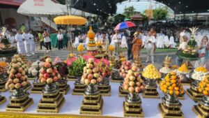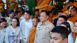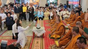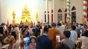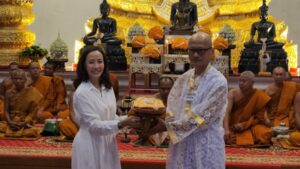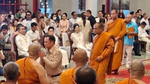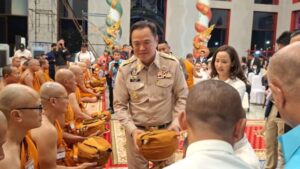 ปทุมธานี – นายกอนุทิน ควงภรรยาร่วมนายกแจ๊ส บวชพระ20รูป และยกช่อฟ้า วัดเทพสรธรรมาราม – บาย ตึ๊ก เจีย  ( วัดหลวงปู่สรวง ) ประชาชนหลายพันคนเข้าร่วมพิธี