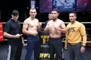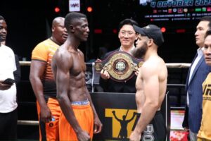 รุสลัน มาดิเยฟ เจ้าของเข็มขัด WBA Asia Welterweight Champion Title ชาวคาซัคสถาน ป้องกันเข็มขัดกับ “อาเบ็ด ชิโคงโก” นักชกจากประเทศนามิเบีย พร้อมคู่มวยร่วมรายการอีก 8 คู่เข้าตรวจร่างกายกับ นพ.จีระศักดิ์ บุบผาชาติ นายแพทย์ประจำการแข่งขัน ซึ่งนักมวยทุกคนมีสุขภาพร่างกายแข็งแรงกล้ามเนื้อยืดหยุ่น และระบบหายใจที่ดี พร้อมดวลกำปั้นในวันพรุ่งนี้ จากนั้นได้ทำการชั่งน้ำหนักผ่านในพิกัดทุกคน สำหรับคู่มวยสุดเดือดในการแข่งขันวันเสาร์ที่ 4 ต.ค.68