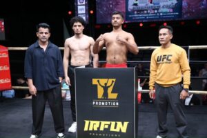 – คู่ที่ 1 อุ่นเครื่องพิกัด 112 ปอนด์ (6 ยก) ไบฮาซาติ เยียร์ซาติ กำปั้นจีน ปะทะ วชิรวิษญ์ แสนปกรณ์ นักชกไทยเจ้าถิ่น