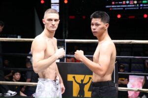 – คู่ที่ 7 อุ่นเครื่องพิกัด 69 กก.( 4 ยก) ปารัตสัต อดาเยฟ จากคาซัคสถาน ดวลหมัดกำปั้นไทย ศิยกสิณ น่วมบัว